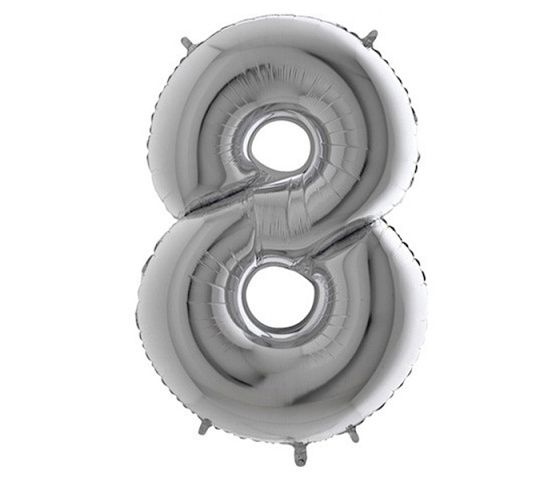 Balónek foliový č. 8 STŘÍBRNÝ 101cm