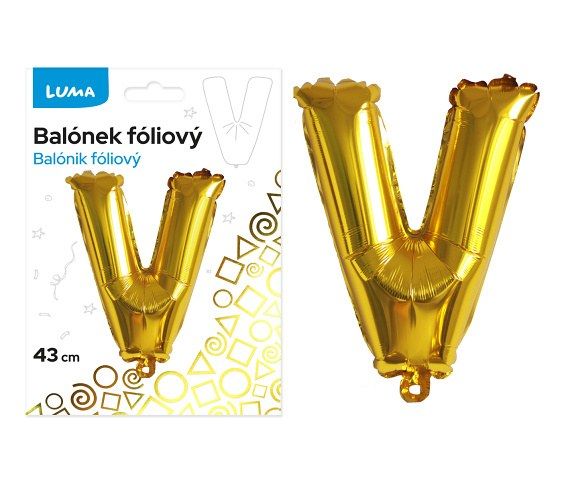 Balónek fóliový "V" ZLATÝ LUMA