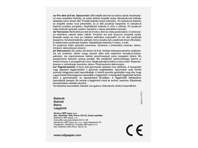 Nafukovací balónek M metal 1,8 g - 23 cm, mix - balónky jsou oblíbeným dekoračním doplňkem na narozeninové oslavě či jiné významné události. Nafukovací balónky nesmí chybět na žádné oslavě, dodají tu pravou atmosféru do celé místnosti a narozeninová párty může začít! BALENÍ OBSAHUJE: - 100 ks metalových balónků VAROVÁNÍ: Vhodné pro děti od 8 let. Děti se mohou prasklými či vyfouknutými balónky zadusit nebo uškrtit. Používejte pouze pod dozorem dospělé osoby. Dospělá osoba se po nafouknutí balónku musí přesvědčit, že jej děti používají bezpečně. Vyfouklé balónky udržujte mimo dosah dětí a prasklé ihned zlikvidujte. K nafukování balónků použíjte pumpičku. Nepřibližujte balónky k očím a obličeji. Při prasknutí může balónek způsobit zranění. Vyrobeno z přírodního kaučuku, latexu. Určeno k dekorativním účelům. Nebezpečí vdechnutí a spolknutí malých částic. Uvedená cena je za 1 ks.