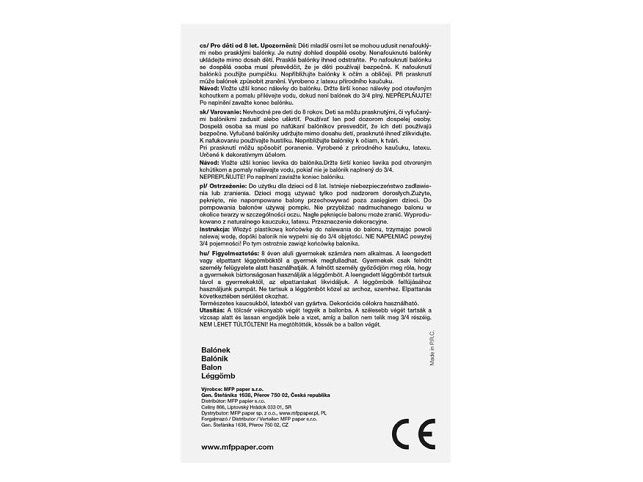 Vodní bomby jsou nafukovací balónky, které se napouští vodou a slouží jako munice v horkých dnech. BALENÍ OBSAHUJE: - 100 ks neonových vodních balónků - nálevku VAROVÁNÍ: Vhodné pro děti od 8 let. Děti se mohou prasklými či vyfouknutými balónky zadusit nebo uškrtit. Používejte pouze pod dozorem dospělé osoby. Dospělá osoba se po nafouknutí balónku musí přesvědčit, že jej děti používají bezpečně. Vyfouklé balónky udržujte mimo dosah dětí a prasklé ihned zlikvidujte. K nafukování balónků použíjte pumpičku. Nepřibližujte balónky k očím a obličeji. Při prasknutí může balónek způsobit zranění. Vyrobeno z přírodního kaučuku, latexu. Určeno k dekorativním účelům. Nebezpečí vdechnutí a spolknutí malých částic. Uvedená cena je za 1 ks.