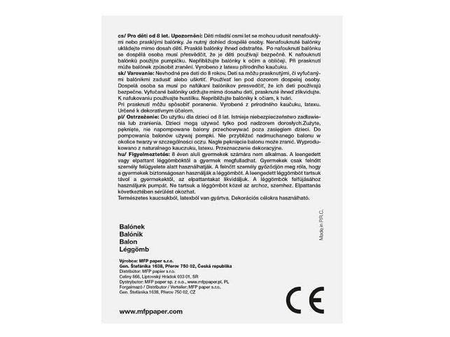 Nafukovací balónek M srdce 3 g - 30 cm, mix - balónky jsou oblíbeným dekoračním doplňkem na narozeninové oslavě či jiné významné události. Nafukovací balónky nesmí chybět na žádné oslavě, dodají tu pravou atmosféru do celé místnosti a narozeninová párty může začít! BALENÍ OBSAHUJE: - 100 ks balónků ve tvaru srdíčka - v bílé a červené barvě VAROVÁNÍ: Vhodné pro děti od 8 let. Děti se mohou prasklými či vyfouknutými balónky zadusit nebo uškrtit. Používejte pouze pod dozorem dospělé osoby. Dospělá osoba se po nafouknutí balónku musí přesvědčit, že jej děti používají bezpečně. Vyfouklé balónky udržujte mimo dosah dětí a prasklé ihned zlikvidujte. K nafukování balónků použíjte pumpičku. Nepřibližujte balónky k očím a obličeji. Při prasknutí může balónek způsobit zranění. Vyrobeno z přírodního kaučuku, latexu. Určeno k dekorativním účelům. Nebezpečí vdechnutí a spolknutí malých částic. Uvedená cena je za 1 ks.