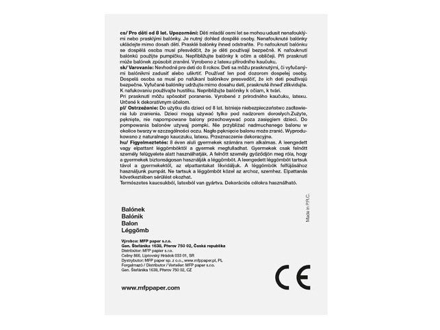 Nafukovací balónek M standard 1,8 g - 23 cm, mix barev - balónky jsou oblíbeným dekoračním doplňkem na narozeninové oslavě či jiné významné události. Nafukovací balónky nesmí chybět na žádné oslavě, dodají tu pravou atmosféru do celé místnosti a narozeninová párty může začít! BALENÍ OBSAHUJE: - 100 ks barevných balónků VAROVÁNÍ: Vhodné pro děti od 8 let. Děti se mohou prasklými či vyfouknutými balónky zadusit nebo uškrtit. Používejte pouze pod dozorem dospělé osoby. Dospělá osoba se po nafouknutí balónku musí přesvědčit, že jej děti používají bezpečně. Vyfouklé balónky udržujte mimo dosah dětí a prasklé ihned zlikvidujte. K nafukování balónků použíjte pumpičku. Nepřibližujte balónky k očím a obličeji. Při prasknutí může balónek způsobit zranění. Vyrobeno z přírodního kaučuku, latexu. Určeno k dekorativním účelům. Nebezpečí vdechnutí a spolknutí malých částic. Uvedená cena je za 1 ks.
