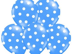 Nafukovací balónky v modré barvě s bílými puntíky jsou parádním doplňkem všech oslav a večírků. Pozor! Prodejné pouze v balení po 50 kusech.