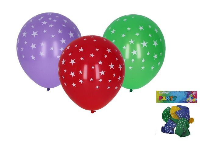 Balónek nafukovací 30cm - sada 5ks, potisk hvězdy