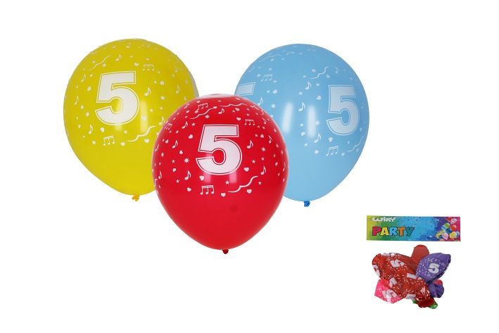 Balónek nafukovací 30cm - sada 5ks, s číslem 5