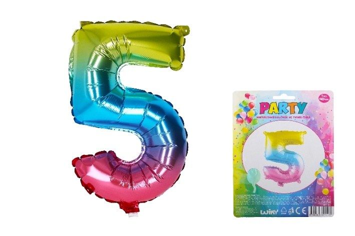 Duhový nafukovací balónek ve tvaru čísla 5 je vhodný jako doplněk na narozeninovou párty. Velikost 40 cm