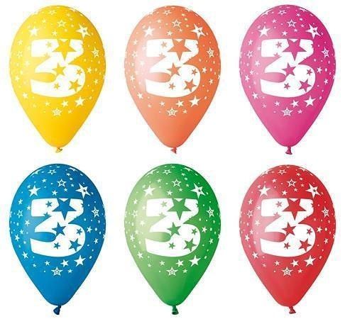 Gumový balónek s hvězdičkami a číslicí 3