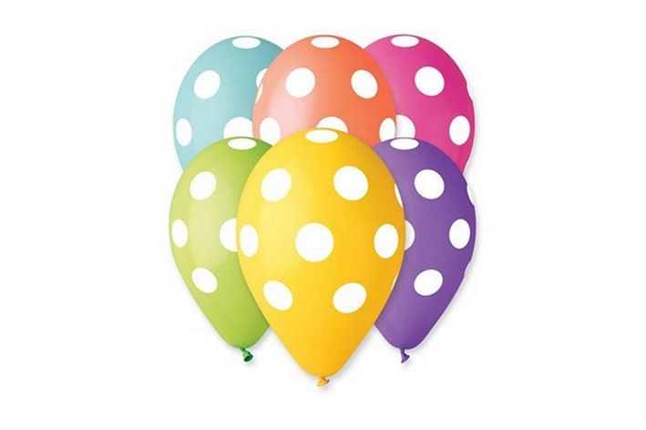 Nafukovací balónky jsou skvělé jako dekorace, výzdoba narozeninové oslavy, různé párty, drobný dárkový a reklamní předmět. Jsou vyrobeny z přírodního kaučuku, který lze 100% biologicky likvidovat, kvalitní a zdravotně nezávadné. Mix barev s potiskem puntíků Průměr: 30 cm