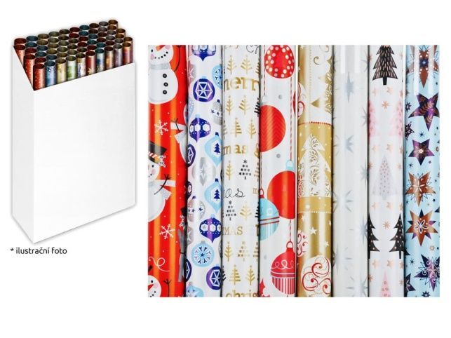 Balicí papír - vánoční role - 8 různých vzorů - U vánočního dárku je velmi důležitý obsah, ale i to, aby byl u stromečku krásně zabalený. Pořiďte si u nás dárkový balící papír s vánočním motivem. Nezapomeňte si koupit i pěknou stužku a jmenovky na dárek. Velikost role: 200x70cm Gramáž: 80g Balení: 60 ks Vzor: různé vánoční vzory - viz obrázek Uvedená cena je za 1 ks. Všech 60 ks je baleno v kartonové krabici.
