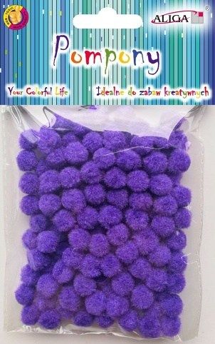Balení 120 ks fialových bambulí o velikosti 1 cm.