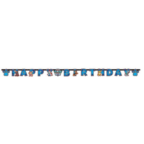 Papírový baner s motivem Tlapková Patrola s písmenky. Zavěšuje se na šňůrkách, vhodná pro ozdobu narozeninových oslav.
