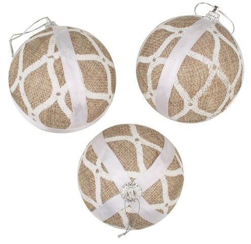 Baňky jutové s bílým dekorem, 8 cm, 3 ks