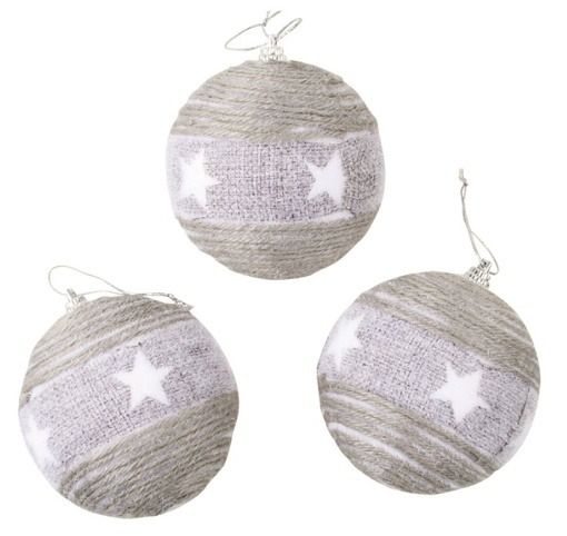 Baňky šedé s hvězdou 8 cm, 3 ks
