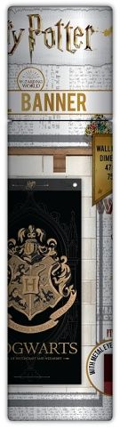Závěsný baner v dárkové tubě s motivem Bradavic. Baner má rozměr 47×95 cm, součástí jsou dvě kovová okan na zavěšení.