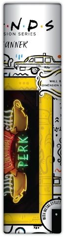 Závěsný baner v dárkové tubě s motivem Přátelé. Baner má rozměr 47×95 cm, součástí jsou dvě kovová okan na zavěšení.