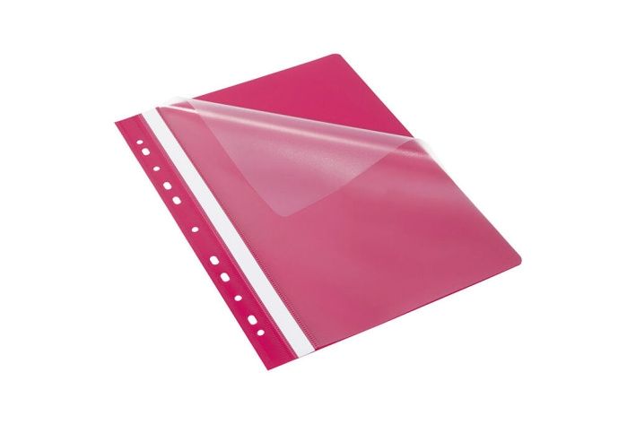 Rychlovazač A4 s euroděrováním, průhlednou přední stranou, v růžovém provedení.