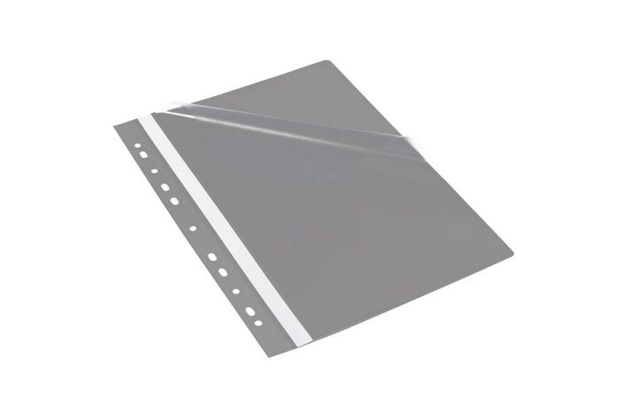 Rychlovazač A4 s euroděrováním, průhlednou přední stranou, v šedém provedení.