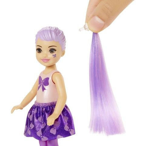 Panenky Barbie® Color Reveal™ Chelsea™ přinášejí zážitek z rozbalování plný překvapení – je jich hned šest! Roztomilá panenka Chelsea v třpytivém oblečku je jistá, ale vzhled každé panenky zůstává tajemstvím, dokud není odhalen. Obal je součástí zábavy –