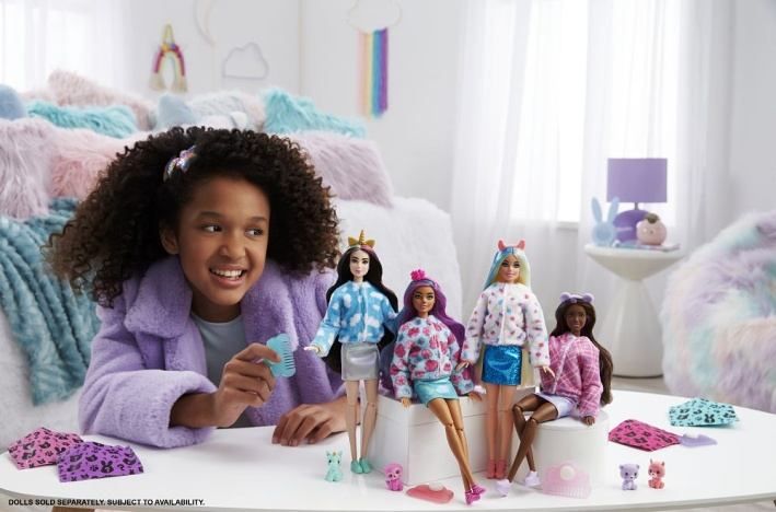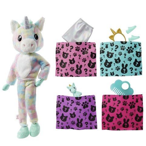 Panenky Barbie® Cutie Reveal™! To není jen největší a nejúžasnější překvapení na světě, ale také hned dvě hračky v jednom jediném balení! Plyšový kostým skrývá pravou identitu Barbie pod maskou roztomilého zvířátka. S Barbie® Cutie Reveal™ zažívají děti radostné napětí korunované překvapením hned v několika krocích. Jako první přichází na řadu otevření krásného pestrobarevného obalu. Panenka v plyšovém kostýmu zvířátka musí nadchnout každé dítě! Druhé překvapení je odhalení, která Barbie se v kostýmu skrývá! Třetím překvapením jsou 4 tajemné sáčky, které ukrývají doplňky. Děti si zamilují objevování všech roztomilých překvapení v této sérii Barbie® Cutie Reveal™. Prodávají se samostatně dle aktuální nabídky. Panenky neumí samostatně stát. Barvy a vzhled výrobku se mohou lišit.
