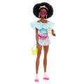 Se svěžím vzhledem, stylovými doplňky a štěněcím kamarádem po boku je tato Barbie® Deluxe módní panenka – trendy bruslařka připravena na nejrůznější dobrodružství! Panenka Barbie® má na sobě volánkovou halenku a sportovní pastelové šortky. Má kudrnaté černé afro vlasy a na nohou obuté rozkošné růžové kolečkové brusle! Barevné doplňky umocňují její módní outfit: čelenka s mašlí, žlutý kšilt, hodinky a fialová taška s páskem. Na všech jejích výletech se k panence Barbie® přidává roztomilé štěňátko! Je oblečená pro nespočet aktivit – od zmrzliny s kamarádkami na promenádě až po bruslení s pejskem v parku. Panenka neumí samostatně stát. Barvy a vzhled výrobku se mohou lišit.