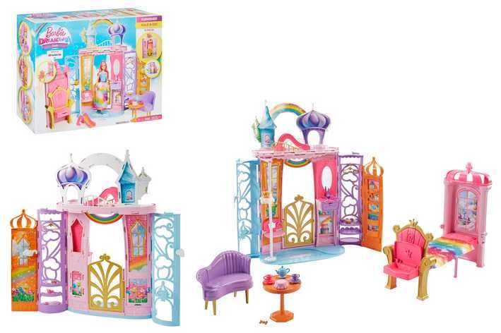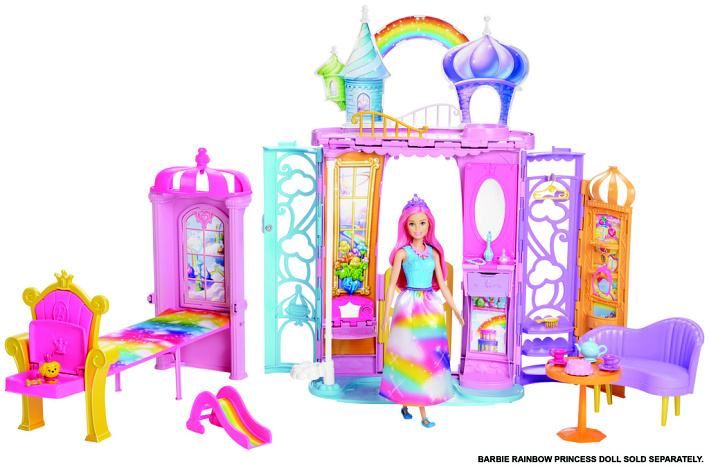 Zámek je prakticky vybaven, trůn princezny jde snadno přeměnit na postel, vedle v postýlce může spát malé štěně. Když nastane den, mohou holčičky vzít pejska ven na hřiště. Pokud ho vyvezou výtahem ve tvaru mráčku do horního poschodí, sklouzne se přímo na hřiště. Panenka se zatím může upravit ve svém salónu u kosmetického stolečku. Zde má připraveny šperky a parfém.Celý bohatě vybavený set je snadno přenosný.Kupte malým slečnám Duhový zámek!Vhodné pro děti od 5 letMateriál: plastRozměry balení: 33 x 43 x 14 cmVýška zámku: 34,3 cm