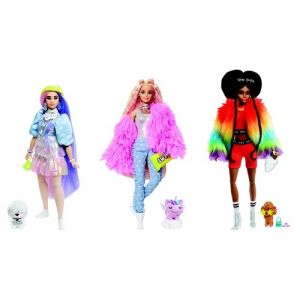 Panenky Barbie® Extra to zvedají o úroveň výš díky odvážným módním volbám a výstředním osobnostem, jimž konkurují pouze jejich mazlíčci, což ukazuje, že styl je stav mysli. Všechny panenky Barbie® Extra jsou polohovatelné díky kloubovým tělům, obsahují domácí mazlíčky, kteří jsou také „extra“, a mají více než 10 nadupaných módních kousků a doplňků. Každá panenka je rovněž dodávána v jedinečném obalu – nejen strukturovaný zlomový rám s výraznými barvami, ale i každá krabička bude obsahovat jedinečný hmatový prvek, jako je látka z bundy panenky Barbie®, konfety uvnitř ikony a stříbrná holografická fólie v logu. Obsahuje panenku Barbie® Extra oblečenou do módních kousků a doplňků spolu s domácími mazlíčky a doplňky pro domácí mazlíčky.