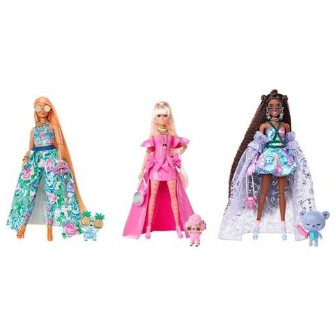 Panenky z kolekce Barbie® Extra Módní zvedají módní laťku o úroveň výš díky odvážným a výstředním módním outfitům! Každá panenka Barbie® má svůj jedinečný styl, který je hravý a neotřelý. A jejich zvířátka - každé jiné a všechna rozkošná - mají také osobnost! Se svými výraznými vlasy, luxusními šaty a doplňky a přinášejí EXTRA atmosféru, kamkoli se hnou. Prodávají se samostatně dle aktuální nabídky. Panenky neumí samostatně stát. Barvy a vzhled výrobku se mohou lišit.