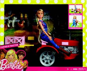 Obsah balení: panenka, traktor, vlečka, zvířátko 5ks, lahvička na mléko, balík slámy