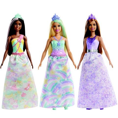 Probuď svou fantazii a vydej se vstříc dobrodružstvím s kouzelnýmiprinceznami Barbie®. Každá princezna je připravena zazářit na jakékolivkrálovské události! Jakmile je na čase si od panování chvilku odpočinout,vydej se se svou princeznou na strhující kouzelné dobrodružství. Každáprincezna je oblečena do dech beroucího oblečku, který připomínákrálovství, ze kterého princezna pochází. Součástí oblečku jeodnímatelná sukýnka, ladící střevíčky a překrásná korunka. Nech seokouzlit kouzelnou princeznou z Duhového království, Sladkého královstvínebo Třpytivého království. Sesbírej všechny princezny a jejich doplňky asni své sny, protože jakmile vstoupíš do Dreamtopie, probudíš se vesvětě, kde se sny stávají skutečností!