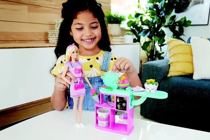 Objevte svět zábavy při výrobě květin s panenkou a herním setem Barbie® květinářka! Pokud milujete květiny a vytváříte krásná aranžmá, pak můžete být květinářkou! Tento herní set obsahuje panenku Barbie® květinářka (30 palců / 30,40 cm) oblečenou v roztomilých pruhovaných pracovních šatech s kapsami na nástroje, stanici na výrobu květin a příslušenství. Poskytuje také 3 barvy modelíny (žlutou, růžovou a zelenou) a 3 způsoby, jak to udělat, aby květiny vypadaly magicky. Chcete-li vyrobit květiny, vložte modelínu do středu pracovní stanice a poté na ni položte „vázu“. Zatlačte boční páčku a sledujte, jak se ve váze objevují květiny! Použijte modelínu různých barev k výrobě různobarevných květin a další květiny vytvořte pomocí formy! Na tyto krásné květy budou zákazníci stát frontu! Herní set obsahuje panenku Barbie®květinářka, stanici na výrobu květin, 3 nádoby s modelínou, 2 vázy, formu, nástroj na čištění a plyšového medvídka. Panenka nemůže zůstat sama. Barvy a dekorace se mohou lišit. Je skvělým dárkem pro děti od 3 let.