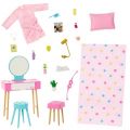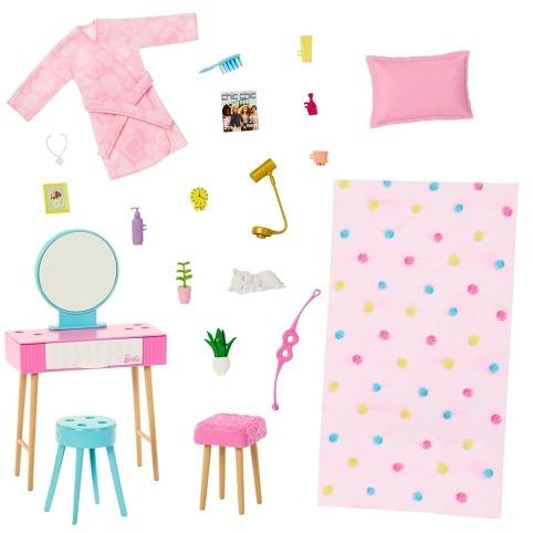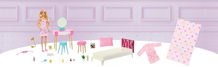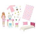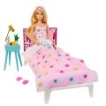 Tento herní set Barbie® Ložnice s panenkou bude inspirací pro milé ranní i večerní příběhy! Panenka Barbie® je dodávána s ospalým koťátkem a více než 15 tematickými doplňky do ložnice. Barbie® se pohodlně uvelebí v rozkošném pyžamovém kompletu s potiskem a nazuje si bačkůrky. Její huňatý růžový župan je extra hebký! Nábytek, jako je postel, noční stolek a toaletní stolek, vytváří scénu pro nejrůznější možnosti hraní rolí, ať už jde o přípravu na den nebo večerní ukládání k spánku s horkým kakaem a časopisem. Doplňky pro panenku Barbie® zahrnují stylingové prvky, jako jsou čelenka a maska na spaní, nebo dekorační předměty, jako jsou lampa a rostlina! Panenka neumí samostatně stát. Barvy a vzhled výrobku se mohou lišit.