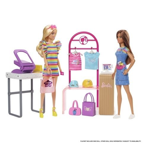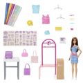 Herní set Barbie® Módní design studio s panenkou umožňuje dětem otevřít si vlastní butik s oblečky a nabízí tři způsoby hry: navrhování oblečků, vyrábění a prodej. Malí módní návrháři mohou vytvářet jedinečné oblečky pomocí funkce sítotisku na fólii a zdobit je opakovatelně použitelnými samolepkami pro více než 150 různých vzhledů. Stojánek na oblečky s ramínky je ideální na zavěšení vytvořených oblečků, jejich vystavení a zabalení k prodeji. Více než 20 tematických doplňků přispívá ke kreativní hře a vyprávění příběhů. Panenka neumí samostatně stát. Barvy a vzhled výrobku se mohou lišit.