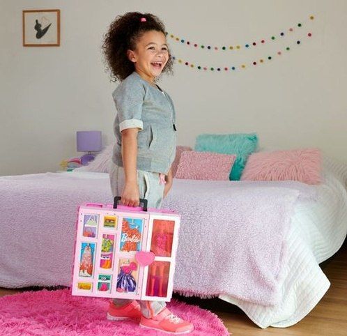 Módní šatník snů s panenkou Barbie® inspiruje děti k vytváření nekonečných módních vzhledů a neomezených možností vyprávění příběhů! Tato nádherná růžová šatní skříň, která se otevírá na šířku více než 60 cm, má více než 15 úložných prostor včetně výsuvného závěsného prostoru, koš na prádlo, velké zrcadlo a psací stůl. Součástí je panenka Barbie® a více než 30 módních doplňků. Děti mohou využít stojan pro panenku a zrcadlo k vytvoření modelu dle svého nápadu; mohou ukládat prádlo do koše na prádlo a využít prostor u psacího stolu k další zábavě při vyprávění příběhů. Obsahuje čtyři kompletní oblečky včetně doplňků pro každou příležitost: módní denní obleček, večerní outfit, obleček zdravotní sestry a obleček plavčíka. Po skončení hraní šatník sbalte a uložte, nebo si jej vezměte s sebou na cesty! Elegantní rukojeť usnadňuje přenášení. Panenka nemůže stát samostatně. Barvy a vzhled výrobku se mohou lišit. Pro děti od 3 let.