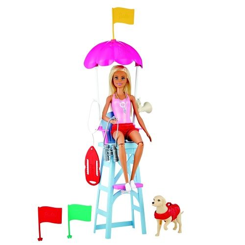 Prozkoumejte svět písku, surfování a zábavy při činnosti plavčíka s herním setem Barbie® plavčice! Když si dívka hraje s Barbie®, představuje si vše, čím se může stát, a pokud milujete plavání a zachraňování životů, můžete být plavčicí! Tento herní set obsahuje prostředí plavčíků s panenkou Barbie® plavčice (12 palců / 30,40 cm) v roztomilých růžových plavkách doplněných červenými šortkami, bílými teniskami a píšťalkou. Přichází také se svou židlí plavčíka s přístřeškem/slunečníkem nad hlavou, megafonem, dalekohledem, 3 vlajkami, bójí a věrným psím přítelem s červenou bundou. Děti budou milovat nekonečné možnosti kreativního vyjadřování a zábavy při vyprávění příběhů! Panenka nemůže zůstat sama. Barvy a dekorace se mohou lišit. Je skvělým dárkem pro děti od 3 let.
