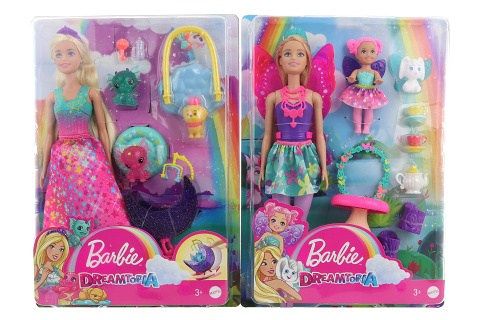 Užij si spoustu zábavy a nejrůznějších příběhů s panenkou Barbie® a těmito parádními herními sety, v kterých na tebe čekají pohádková dobrodružství. V každém setu najdeš parádní herní doplňky a panenku Barbie® v pestrobarevném oblečku s fantastickými potisky a odnímatelnými vlasovými doplňky. Dej průchod své fantazii a vymýšlej nejrůznější příběhy podle svých představ. Rozměr balení cca 32,5 x 23 x 6 cm. Věk 3+