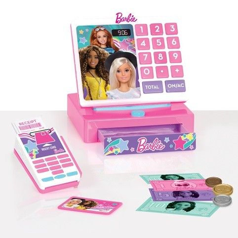 Fanoušci Barbie mohou své zákazníky oslovit stylově pomocí Barbie trendy pokladny! Tato báječná pokladka má tolik zábavných funkcí a doplňků, se kterými si mohou malí majitelé obchodů hrát. Díky realistickým zvukům rejstříku a zábavným frázím Barbie budou mít děti pocit, že pracují přímo s Barbie. Použijte čtečku hracích karet k nabíjení kreditních karet zákazníka. Celá sada obsahuje jednu pokladnu Barbie, hrací hotovost a mince, jednu hrací kreditní kartu a jednu hrací čtečku kreditních karet. Vyžaduje 2 x AA baterie (součástí balení). Věk 3+ Na baterie: 2x AA (jsou součástí balení)