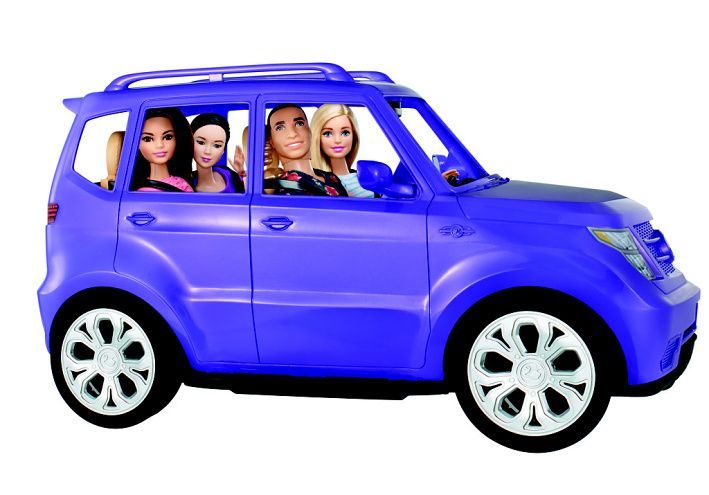 Připoutej se a vydej se na divokou cestu v tomto báječném SUV panenky Barbie! Jeho vnější vzhled je laděn do fialova a vnitřek má hnědou barvu. Kolečka tohoto SUV se opravdu otáčí a uvnitř je dostatek místa, takže se v něm mohou pohodlně projet až čtyři panenky najednou. Panenky se prodávají samostatně. Díky volantu, dvěma kelímkům s kávou a bezpečnostním pásům se hra stává ještě realističtější.