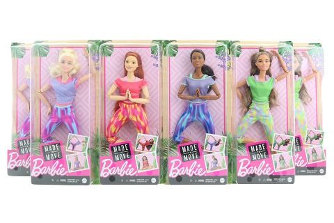 Panenka Barbie® ví, že metodou, jak podávat maximální výkon, je dopřát si tu nejlepší péči, ať už při pohybu nebo při setrvávání v klidu! Panenky stvořené k pohybu Barbie® Made to Move™ dokáží ztvárnit realistický pohyb v obou případech díky schopnosti manévrování a pózování v realistických pozicích. Každá panenka má 22 „kloubů“ – v krku, pažích, loktech, zápěstích, trupu, bocích, stehnech, kolenech A kotnících – pro neuvěřitelný rozsah pohybu. Trendové oblečení spojující sport a volný čas – síťované topy a batikované kalhoty – podporuje dynamickou hru a pohyblivost. Děti mohou sbírat panenky Barbie® wellness, aby prozkoumaly péči o sebe a rozšířily možnosti hraní! Každá se prodává samostatně, v závislosti na dostupnosti. Panenky nemohou zůstat samy. Barvy a dekorace se mohou lišit. Věk 3+