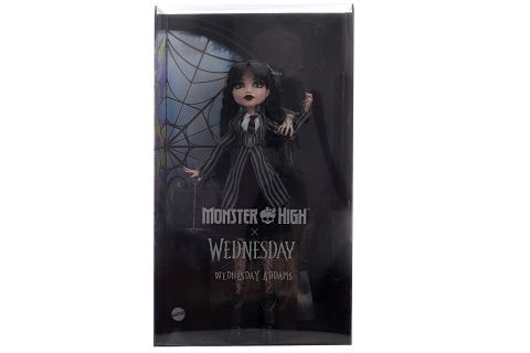 Monster High Wednesday je kolekce panenek pro temné duše inspirovaná úspěšným televizním seriálem. Sběratelská panenka Wednesday Addams, oděná od hlavy až k patě do černé, vyzařuje temné kouzlo ve své uniformě z Akademie Nevermore. S Věcí na svém rameni a dokonalými botami je více než připravena odhalit jakékoliv morbidní tajemství, které se jí postaví do cesty. Panenka nemůže stát samostatně. Barvy a provedení se mohou lišit.