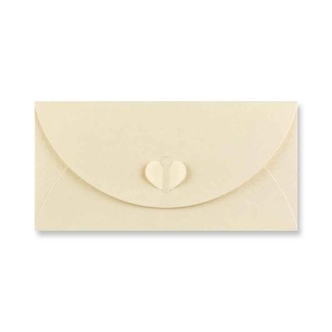 Obálka DL 110 x 220 mm 250 gr, perleťová krémová. Balení 10 ks. Ozdobné zavírání ve tvaru srdce.