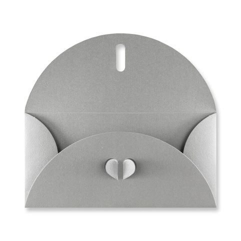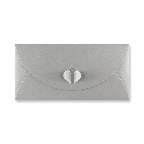 Obálka DL 110 x 220 mm 250 gr, stříbrná. Balení 10 ks. Ozdobné zavírání ve tvaru srdce.