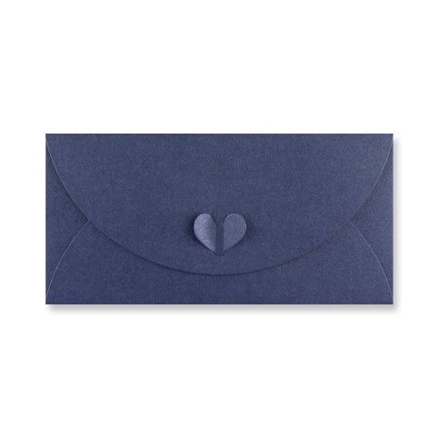 Obálka DL 110 x 220 mm 250 gr, perleťová tmavě modrá. Balení 10 ks. Ozdobné zavírání ve tvaru srdce.