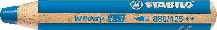 Barevná pastelka "Woody", modrá, 3v1 – pastelka, vodovka, voskovka, STABILO