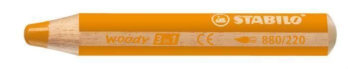 Barevná pastelka "Woody", oranžová, 3v1 – pastelka, vodovka, voskovka, STABILO