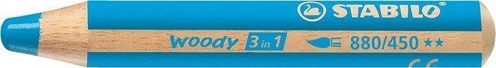 Barevná pastelka "Woody", azurová modrá, 3v1 – pastelka, vodovka, voskovka, STABILO