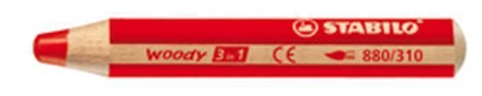 Barevná pastelka "Woody", červená, maxi, 3v1 – pastelky, vodovka, voskovka, STABILO
