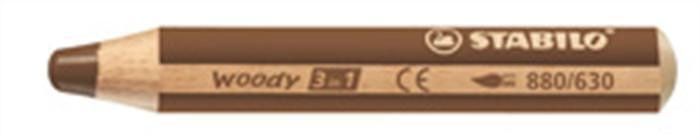 Barevná pastelka "Woody", hnědá, 3v1 – pastelka, vodovka, voskovka, STABILO