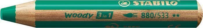 Barevná pastelka "Woody", tmavě zelená, 3v1 – pastelka, vodovka, voskovka, STABILO