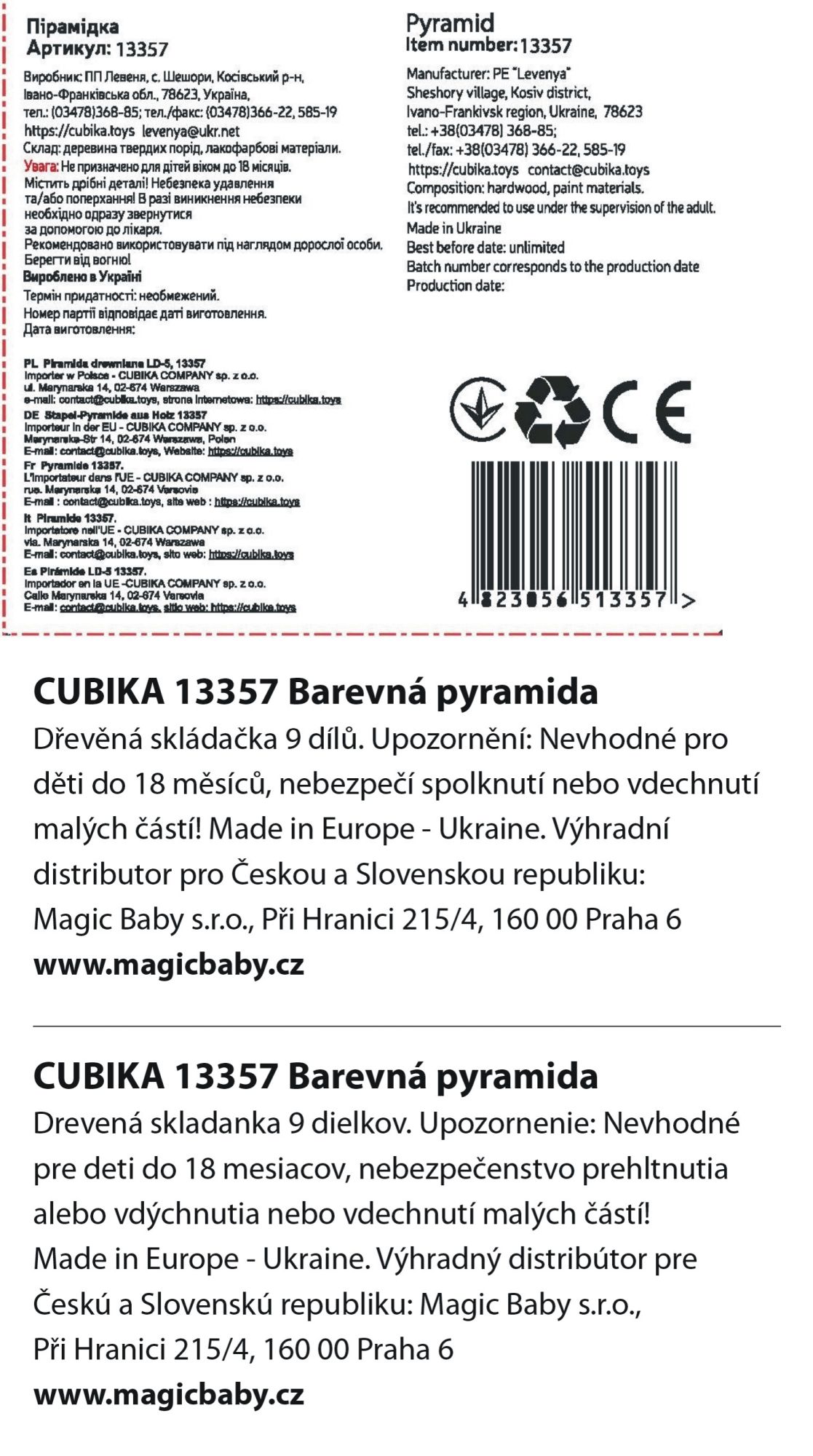 Barevná pyramida je dřevěná skládačka s 9 díly, které by na sebe měly být poskládány tak, aby bylo možné zachovat při stavbě správný tvar starodávné egyptské pyramidy.Vyrobeno v Evropě z ekologicky pěstovaného dřeva. Doporučený věk od 18 měsíců.