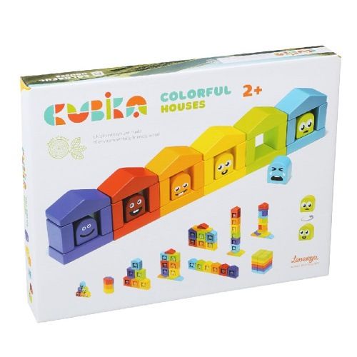 CUBIKA je nová značka dřevěných hraček vyrobených pouze z ekologicky pěstovaného dřeva s velmi precizním opracováním a líbivým designem. Dřevěná stavebnice se 30 barevnými prvky včetně kostiček s emotikony nabízí mnoho zábavy. Každý z šesti domečků má svého obyvatele v příslušné barvě, které je třeba správně do domečku umístit. Děti se tak formou zábavné hry učí poznávat barvy. Fantazii při stavitelské činnosti se zde však meze nekladou. Z kostiček lze hravě postavit různé architektonické komplexy. Výška všech složených domečků 36 cm. Sortiment hraček značky CUBIKA pomáhá dětem rozvíjet především senzomotorické schopnosti a dovednosti, logické myšlení, kreativitu, představivost a různé poznávací znalosti. CUBIKA je nová značka dřevěných hraček vyrobených pouze z ekologicky pěstovaného dřeva s velmi precizním opracováním a líbivým designem. Hračky jsou vyrobeny z nejkvalitnějšího javoru a buku a k barvení se používají též vysoce kvalitní barvy na vodní bázi, které jsou naprosto bezpečné pro děti a nemají žádný zápach. Všechny výrobky této značky mají německý certifikát TÜV a jsou vyrobeny dle evropské normy pro bezpečnost hraček EN 71. Nevhodné pro děti do 2 let. Vyrobeno v Evrop